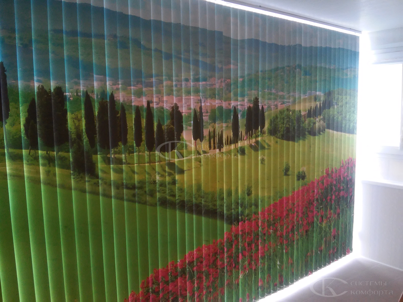 Если из многообразия Вы не смогли подобрать подходящие вертикальные жалюзи, на ткань можно нанести любое изображение методом фотопечати: любимое фото, детский рисунок или логотип компании. Рисунок получается четким и долговечным, он не сотрется и не выгорит на солнце.